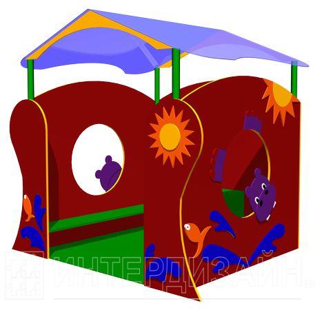 Детский игровой домик «Бегемотик» представляет собой металлический каркас, облицованный фанерными накладками.