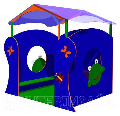 Детский игровой домик «Лягушка» представляет собой металлический каркас, облицованный фанерными накладками.