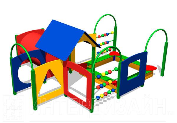 В состав комплекса помимо панелей входят лаз-труба, песочница и игровые элементы «Счеты». Изделие предназначено для сюжетных игр детей дошкольного возраста и устанавливается на детских площадках соответствующих возрастных категорий.
