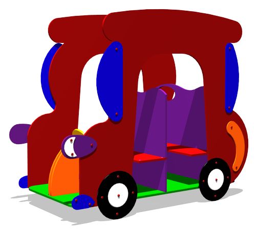 Игровой макет «Машинка-Жук представляет собой цельносварной каркас, облицованный фанерными накладками и полом из ламинированной фанеры с сеткой, препятствующей скольжению.