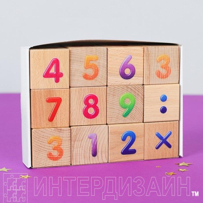 Кубики деревянные "Счёт", 12 шт., цветные.цифры - Описание