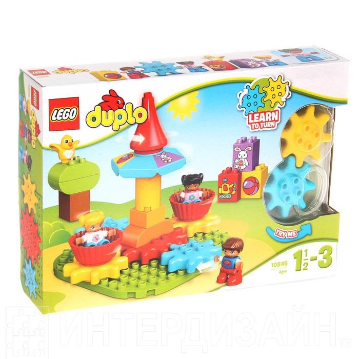 Объясните ребёнку работу простых механизмов вместе с Lego Duplo. Соберите с малышом карусель из цветных шестерёнок и покрутите красный шпиль аттракциона. Если конструкция построена правильно, то каждая кабинка закружится точно в танце.