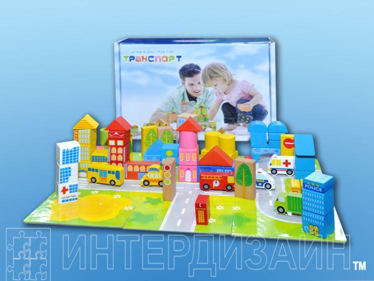 Представляет собой развивающий набор, состоящий из деревянных игрушечных строительных блоков, игрушечного транспорта, фигурок людей, комплекта тематических предметных и образных наклеек с изображениями аппликаций, транспорта, персонажей, предметов.