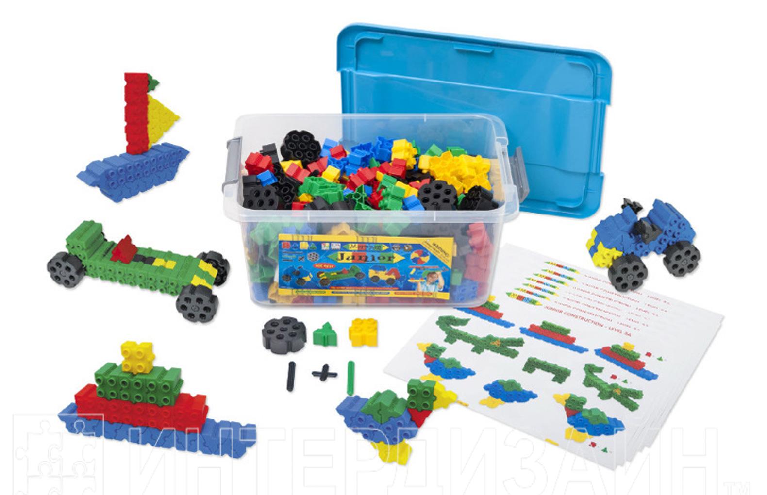 В комплекте:600 деталей в виде квадратов и треугольников, колеса, соединительные, направляющие и дополнительные элементы; инструкции по сборке