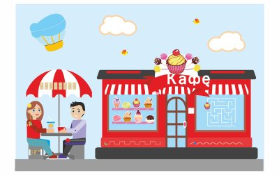 Здание «Кафе» - панель для развития моторики, включает лабиринт на боковой стене.