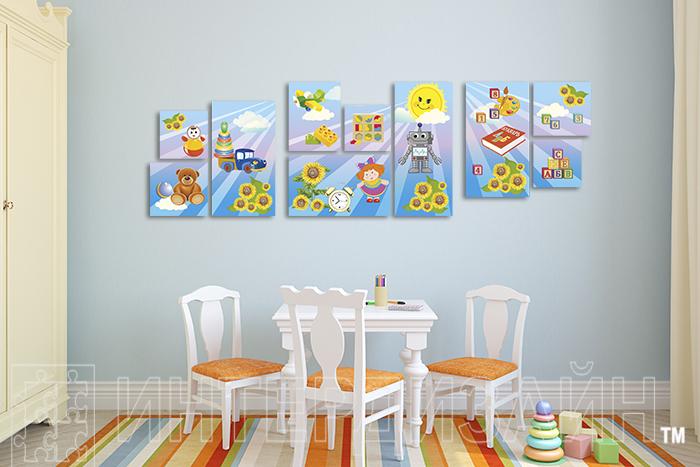Яркая и красочная модульная картина отлично впишется в интерьер детского сада или детской комнаты.