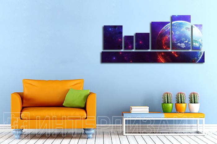 Космические модульные картины наполнят помещение особой энергетикой. При условии правильного подбора сюжета, картина отлично будет смотреться в любом интерьере.
