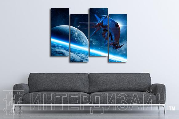 Космические модульные картины наполнят помещение особой энергетикой. При условии правильного подбора сюжета, картина отлично будет смотреться в любом интерьере.