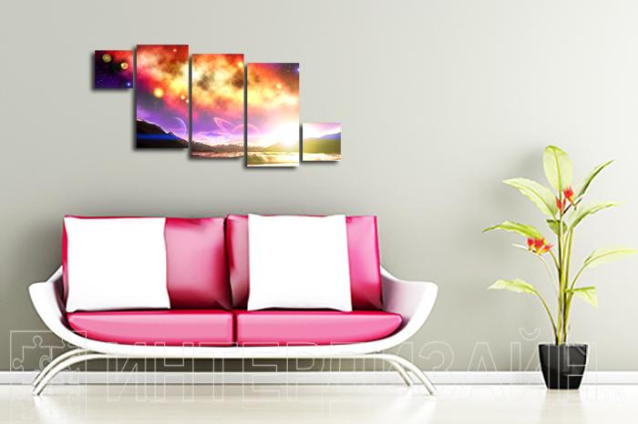 Космические модульные картины наполнят помещение особой энергетикой. При условии правильного подбора сюжета, картина отлично будет смотреться в любом интерьере.
