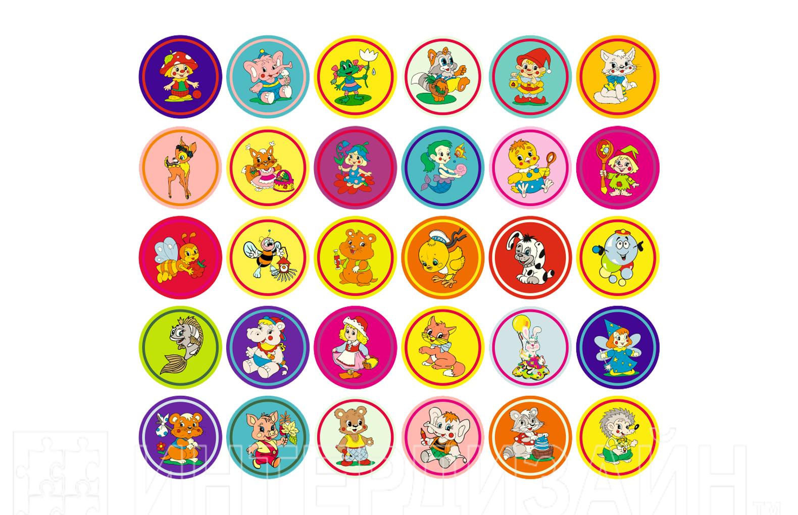 Круглые наклейки для детских шкафчиков и кроваток необходимы для приучения к порядку с самых малых лет в детском саду.