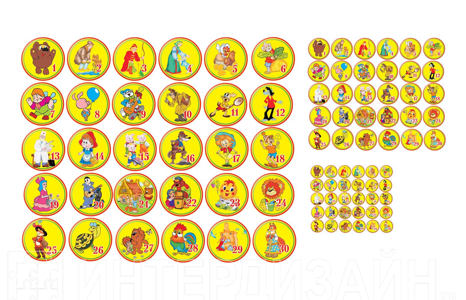 Подобный комплект наклеек создан для 30 детей и имеет наклейки трёх различных размеров: