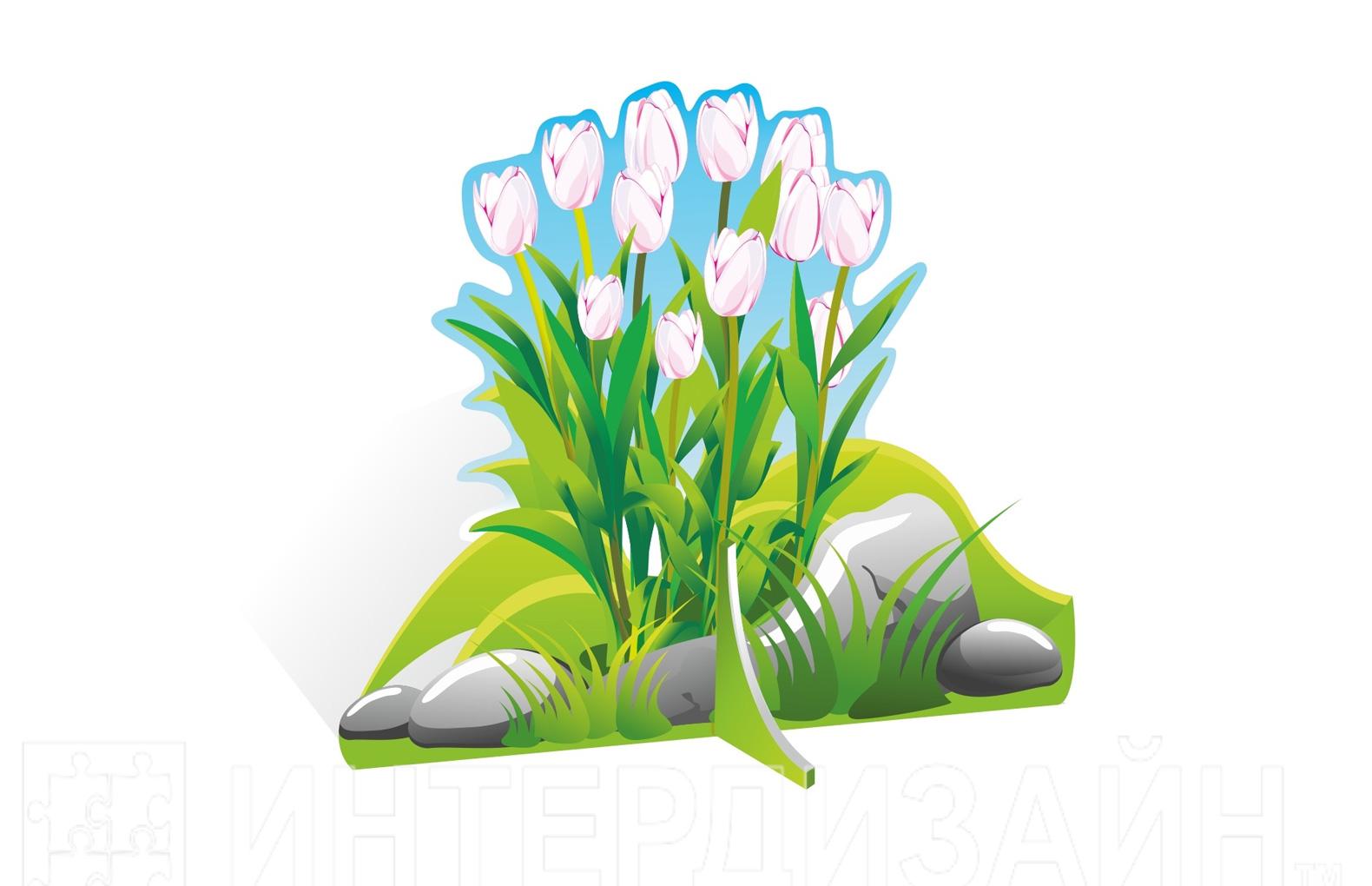 В комплекте :Декорация для утренников "Белые тюльпаны", размер 60см х 67см, подставка под декорацию