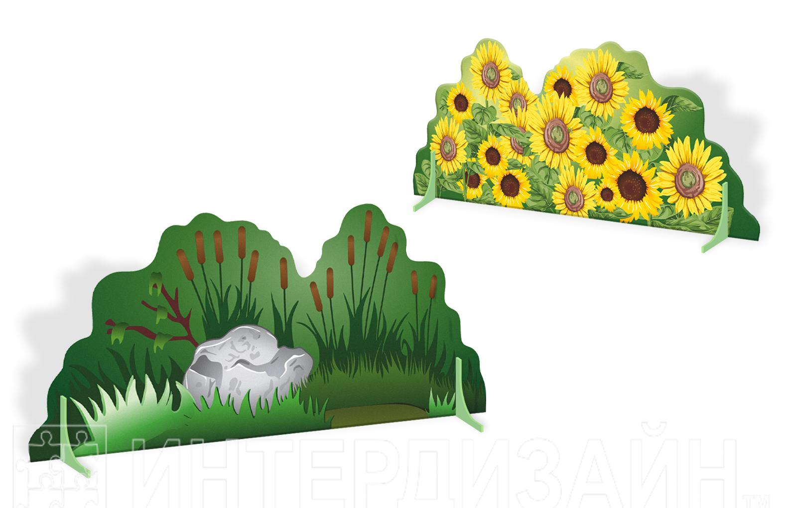 Двусторонняя напольная декорация "Камыши-подсолнухи" станет великолепным акцентом вашего утренника или театрального представления. Наши декорации привнесут уют и теплоту в ваше мероприятие, окружив его невероятной атмосферой природы и загадочности. Вместе с нашими декорациями ваш зал наполнится счастьем и радостью, создавая яркое и весеннее настроение.