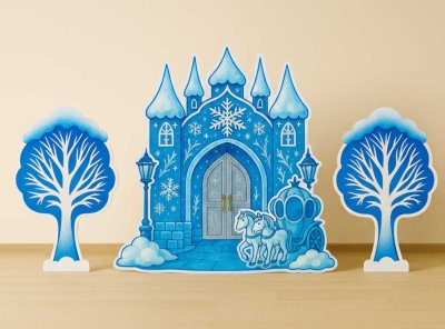 Превратите ваш музыкальный зал в настоящее сказочное королевство с нашей волшебной декорацией «Ледяной дворец принцессы»! Она идеально подойдет для создания чарующей атмосферы на новогодних утренниках и станет центральным элементом в постановках историй о снежных королевах и волшебных принцессах.