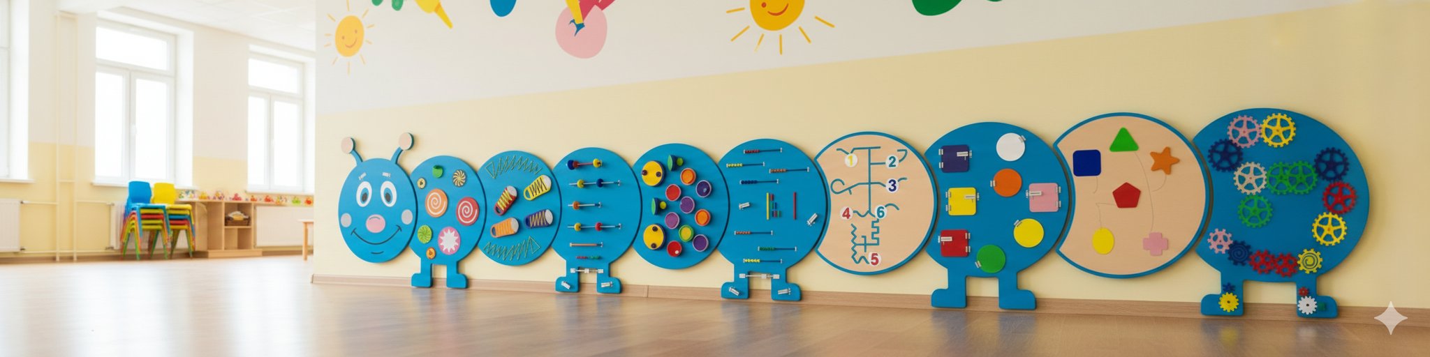 Развивающая настенная панель «Яркая гусеничка» (8 модулей) - Описание