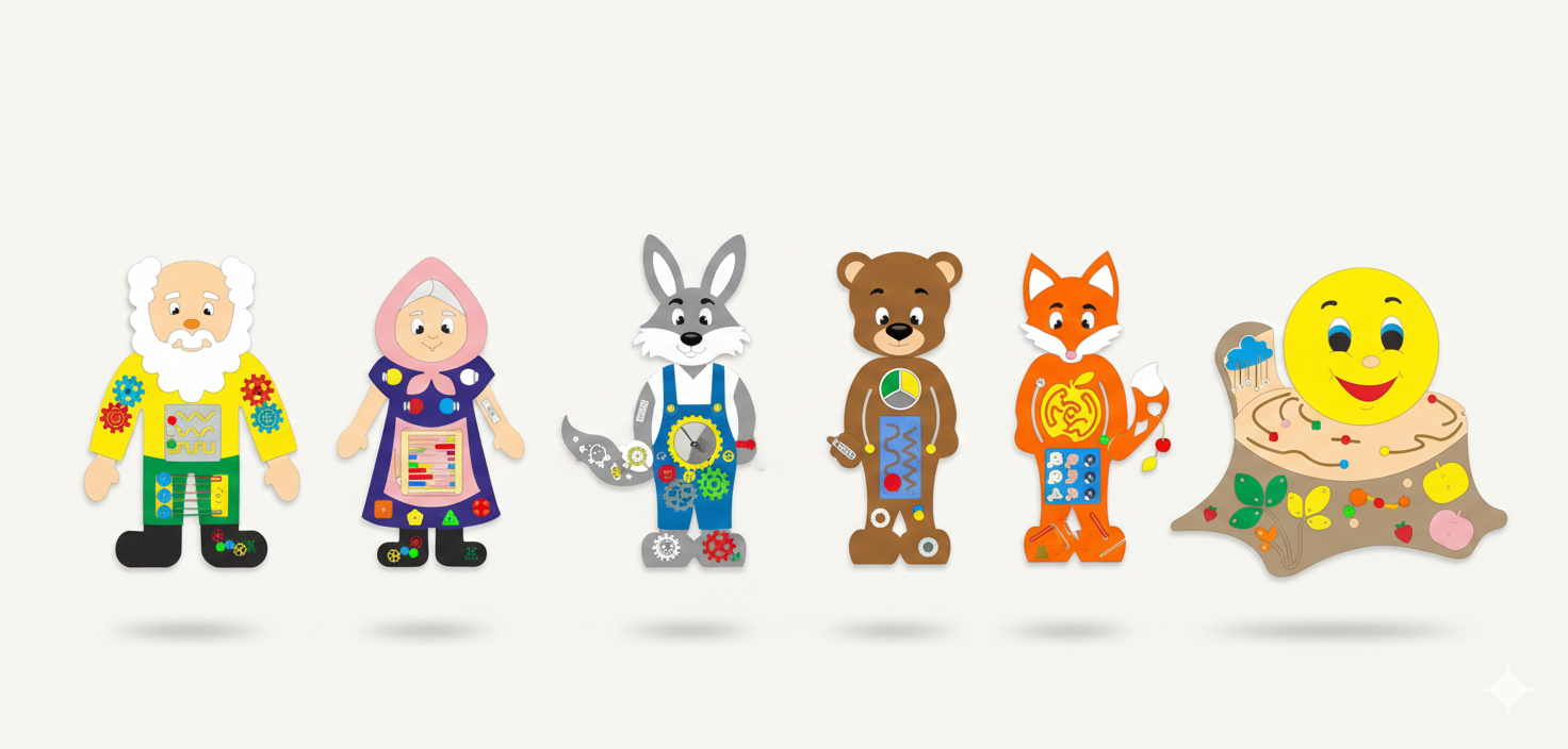 Каждый герой сказки — это отдельный бизиборд со своим набором манипуляторов: