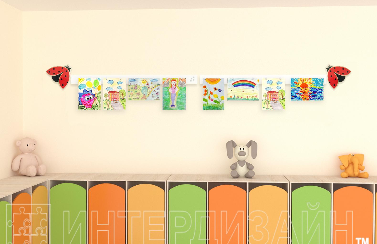Композиция предназначена для удобной и эстетичной организации выставки детских рисунков или размещения информации для родителей.