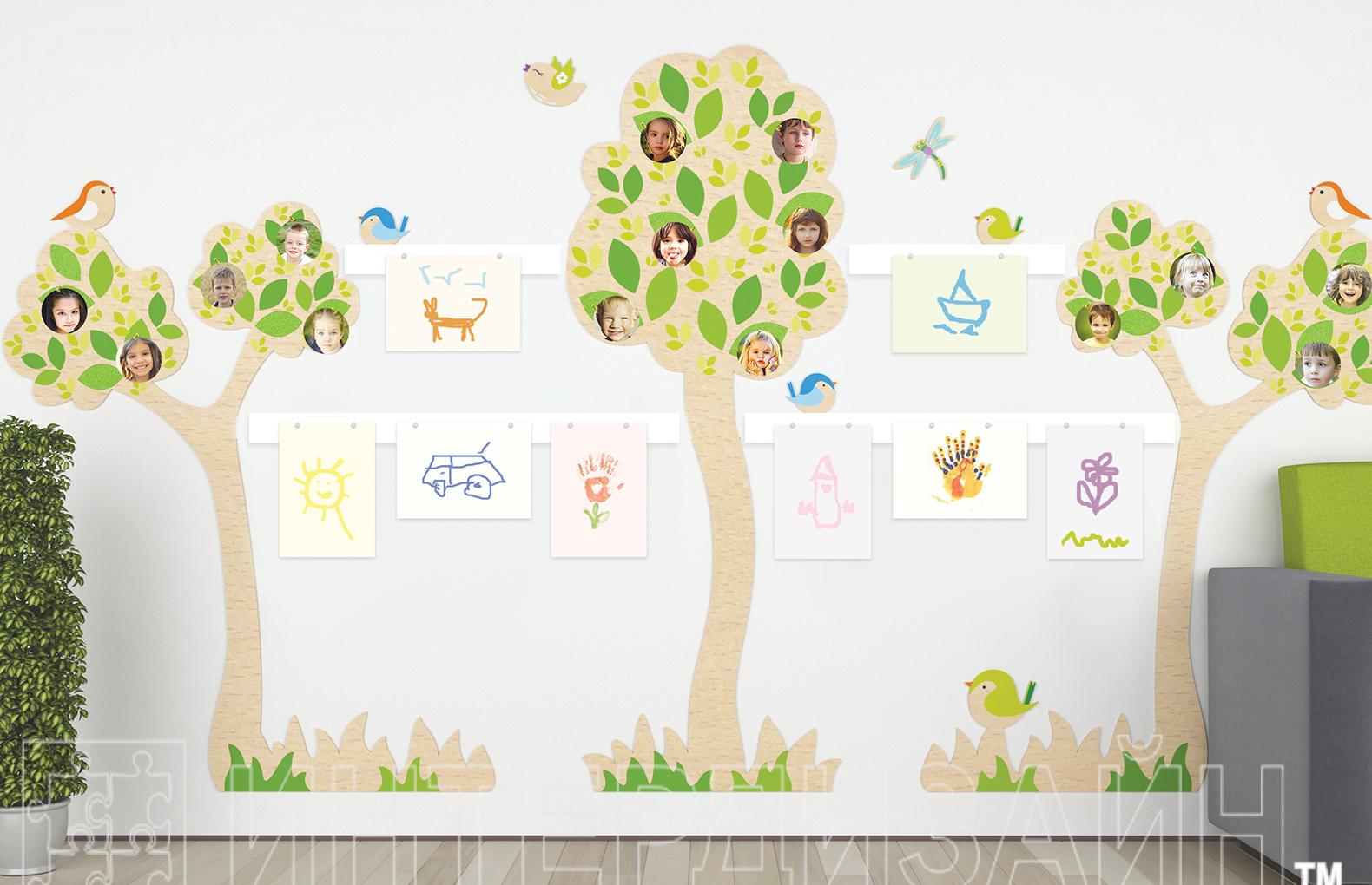 Композиция станет замечательным решением для рекреационных зон - магнитные панели позволяют оформить выставку детских рисунков или разместить любую полезную информацию, а деревья приятных пастельных тонов украшают детский интерьер и позитивно влияют на настроение.
