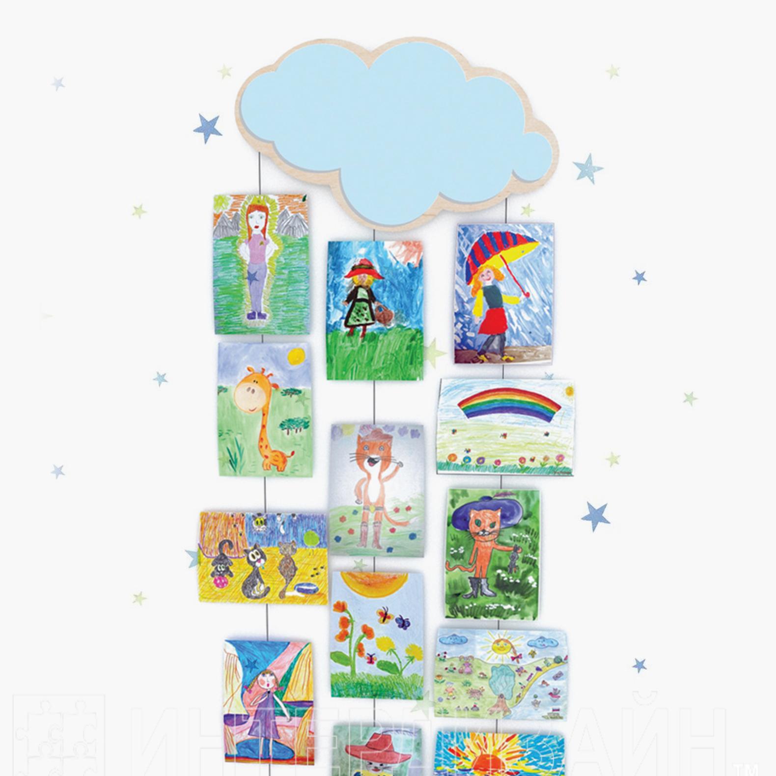 В комплекте трос с утяжелителем (3 шт), Облачко, прищепки для креплений рисунков (15 шт), фурнитура для крепления к стене