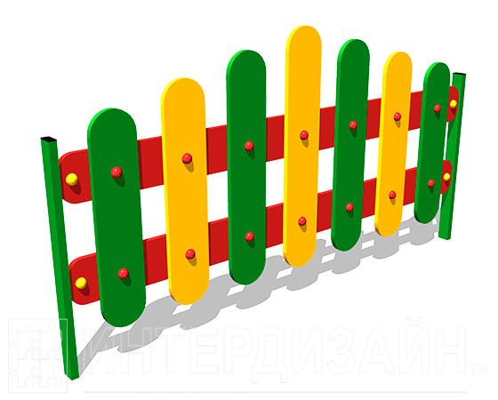 Разноцветные прямые штакетины этого ограждения детской площадки создадут на вашем участке необычную и радостную атмосферу. Волнообразная форма забора будет приятна глазу ребенка. За таким ограждением дети будут играть, находясь в безопасности.