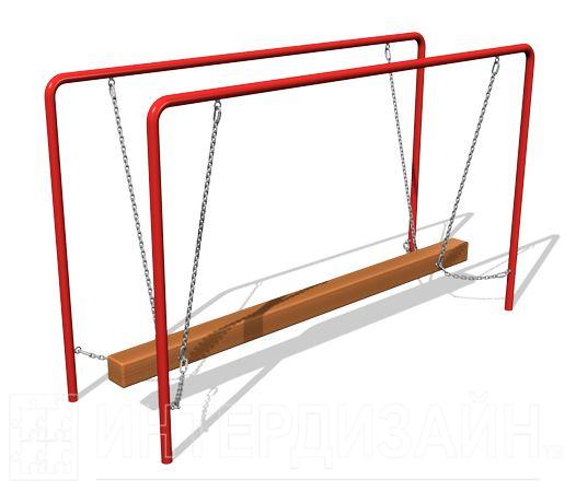 Бревно-балансир «Ручеек» выполнено в виде стальных перил и закрепленного между ними на цепях деревянного бруса. Горизонтальные цепные растяжки, в целях безопасности, ограничивают амплитуду раскачивания снаряда, при этом оставляя ему достаточную степень свободы.