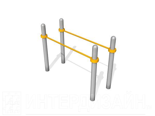 Снаряд состоит из четырех стоек соединенных между собой стальными брусьями. Крепление брусьев осуществляется с помощью специальных стальных хомутов.