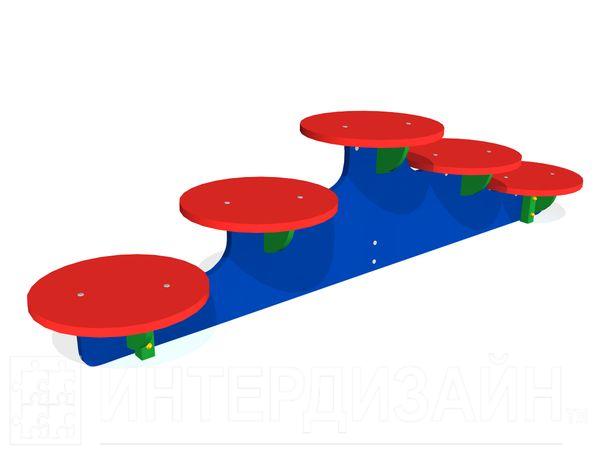 Бум детский «Ступени» представляет собой размещенные на разных уровнях круглые площадки ступенек. Ребенок по мере прохождения бума сначала поднимается по ступеням вверх, затем спускается по ним с другой стороны. Высота ступеней 140, 270 и 400 мм.