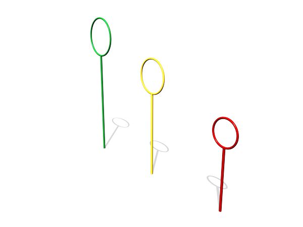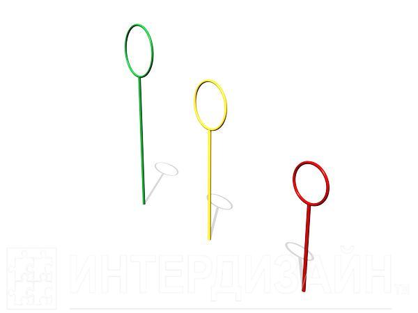 Мишень для бросания мяча «Кольца» состоит из трех отдельно стоящих элементов изготовленных из стальной трубы.