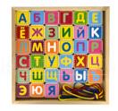 Деревянный конструктор "Шнуровка азбука", 33 детали, 4 шнурка, деревянная коробка КША3311