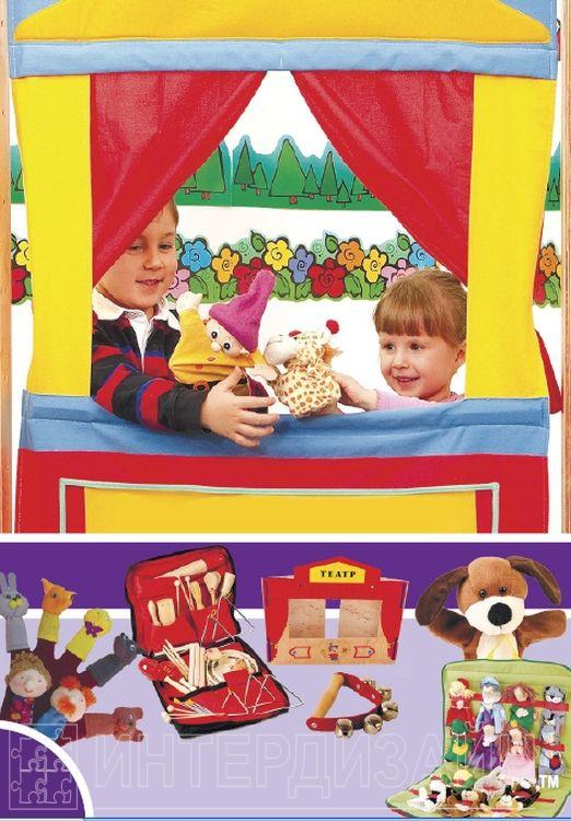 - театры, включающие сцену, декорации, фигурки персонажей, позволяющие сыграть спектакли по нескольким русским народным сказкам («Колобок», «Репка», «Три медведя» и пр.).