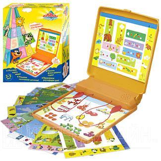 Набор включает в себя пластиковый чемоданчик и 12 карточек с заданием расположенных с двух сторон. Ребёнку нужно разместить карточку на игровое поле и отвечать на задание, если ответ правильный, участник слышит звуковой сигнал.