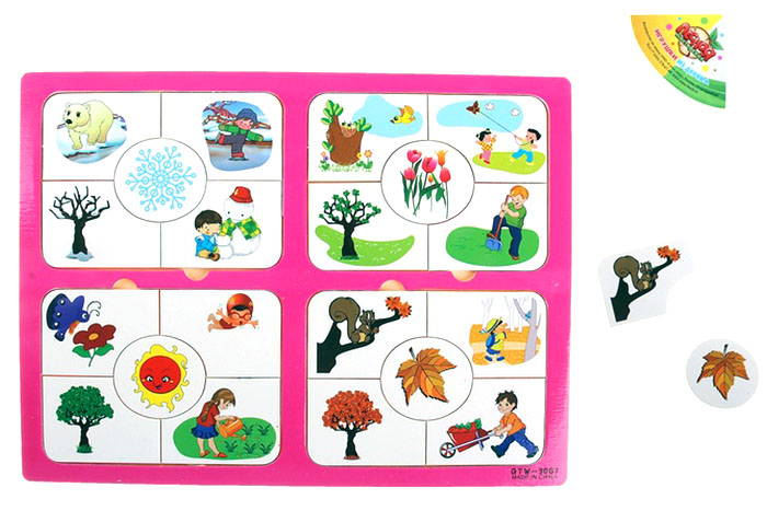 Рамка вкладыш "Времена года" состоит из деревянной основы и 20 элементов с картинками, которые познакомят малыша с временами года. Великолепная игра поможет развить Вашему малышу мелкую моторику рук, логическое мышление, внимательность, память и усидчивость.