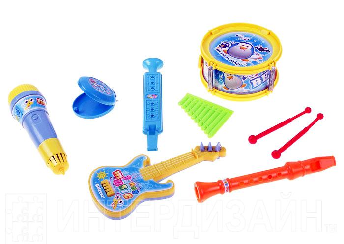 Набор музыкальных инструментов "Оркестр" способствует развитию слухового восприятия, чувства ритма, мышления и формированию музыкального вкуса и способностей. В комплект входит: барабан, 2 палочки, гитара, кастаньета, микрофон и 3 флейты.