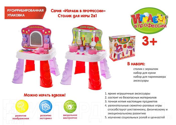 Игровой набор поможет Вашему ребенку больше узнать о профессии повара и парикмахера. Такой набор способствуют развитию воображения, фантазии, творческих способностей и способностей к самостоятельным действиям. В набор входит: столик, набор для кухни, набор с зеркалом и аксессуары.