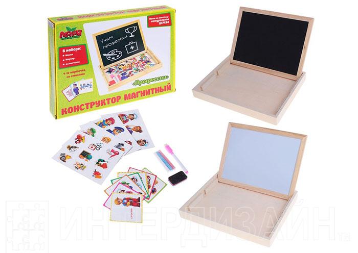 Конструктор магнитный "Профессии" познакомит Вашего ребенка с различными интересными профессиями и их особенностями. Конструктор способствует развитию мелкой моторики, логического и пространственного мышления, фантазии и воображения. Одна сторона конструктора предназначены для игр с магнитами, а вторая для рисования мелками. В набор входят: доска, 44 магнита, 12 карточек со стихами, мелки, маркер, губка и инструкция.