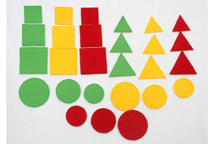 Дидактический набор на липучках Геометрические фигуры предусмотрен для использования в группах доу. С помощью него дети научатся различать цвета и геометрические фигуры, а также проводить сравнительный анализ (больше-меньше).