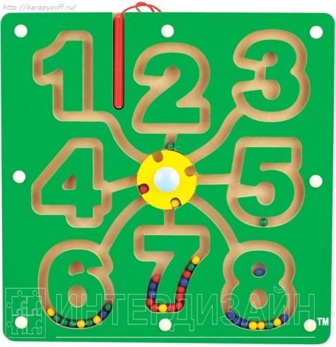 С помощью такого лабиринта детки будут развивать координация движений, изучать цифры, цвета и формы предметов. Играя малыши легко научатся считать, обязательно запомнят как выглядят цифры и смогут их написать. Деревянная основа является безопасной и долговечной, и будет радовать детей не один год.