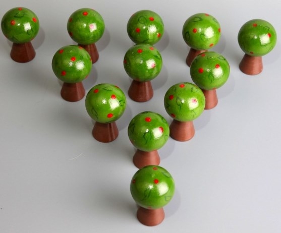 Счетный материал "дерево Яблонька" - набор из десяти маленьких яблонек размером 3,5 см. в высоту. Материал – натуральное дерево. Прекрасно подойдет для изучения чисел и счета с детьми дошкольного возраста.