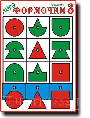 Логоформочки Воскобовича - 3– это оригинальная и увлекательная игра, состоящая из рамки с подвижным полем и набора фигурок: 3 красные фигуры- эталонные (круг, квадрат и треугольник) и 6 зеленых - представляют собой сочетание элементов эталонных фигур.