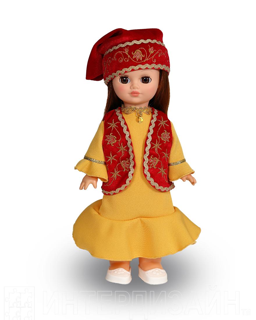 Кукла Алсу Весна из серии «Этно» может стать настоящей подружкой для ребёнка. Это кукла, одетая в стилизованный татарский национальный костюм. В комплект одежды куклы входит: платье, жилет, шапочка с элементами национальной вышивки. Комплект дополняют туфли. Игровые и дидактические возможности куклы: Алсу Весна может быть так называемой «методической куклой» для обучения детей культурным и национальным особенностям разных народов. При нажатии на звуковое устройство, вставленное в спинку, кукла произносит фразы, которые воспитывают толерантность. Наличие элементов одежды, которые легко снимаются и надеваются, разнообразит возможности сюжетно-ролевых игр с этой куклой, в процессе которых развивается мелкая моторика и творческое воображение ребёнка. Прекрасные прошитые волосы из качественного нейлона, похожие на натуральные, можно завивать, расчёсывать, укладывать в разные причёски, меняя образ куклы. Рост куклы 35 см. Кукла Алсу Весна озвучена. Глаза вставные закрывающиеся. Тело куклы пропорционально.