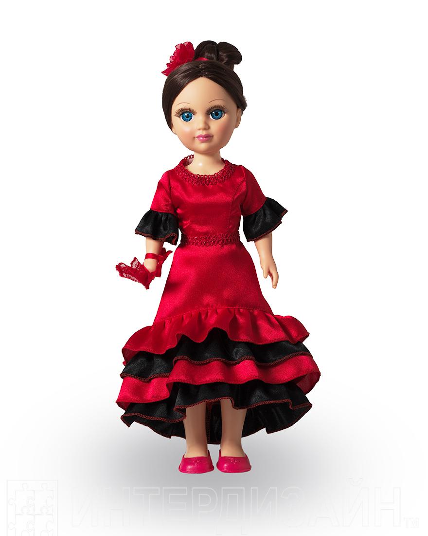 Анастасия Весна Испанский танец из коллекции Танцы - кукла с выразительными глазами, пушистыми ресницами и роскошными волосами. На кукле нарядное шёлковое платье с оборками, стилизованное под танцевальный костюм для исполнения испанских танцев и туфельки. Из аксессуаров – веер из капронового кружева. Производитель оставляет за собой право изменения цветовой гаммы одежды и волос куклы, цвет глаз может варьироваться. Элементы кукольной одежды: застежки, головной убор, обувь способствуют развитию мелкой моторики. Прекрасные длинные волосы, похожие на натуральные, можно завивать, расчёсывать и укладывать в разные причёски, меняя образ куклы. Продуманная конструкция куклы позволяет её сажать, ставить на ножки, переодевать. Эта кукла подходят для сюжетных игр и разнообразных игровых действий ребёнка. Высота 42 см. Кукла озвучена. Тело куклы пропорционально и гармонично: руки и голова выполнены из эластичного приятного на ощупь винила, а туловище и ноги из пластмассы.