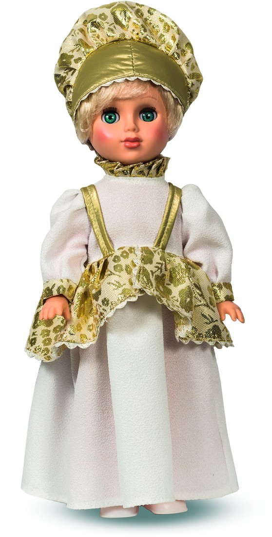 Производитель оставляет за собой право изменения цветовой гаммы одежды и волос куклы, цвет глаз может варьироваться. Кукла Вятская красавица Весна из серии «Этно» может стать настоящей подружкой для ребёнка. Это кукла, одетая в стилизованный русский национальный костюм. В комплект одежды куклы входит: длинное нарядное платье, шапочка. Комплект дополняют туфли. Игровые и дидактические возможности куклы: Вятская красавица Весна может быть так называемой «методической куклой» для обучения детей культурным и национальным особенностям разных народов. Наличие элементов одежды, которые легко снимаются и надеваются, разнообразит возможности сюжетно-ролевых игр с этой куклой, в процессе которых развивается мелкая моторика и творческое воображение ребёнка. Прекрасные прошитые волосы из качественного нейлона, похожие на натуральные, можно завивать, расчёсывать, укладывать в разные причёски, меняя образ куклы. Рост куклы 35 см. Кукла Вятская красавица Весна не озвучена. Глаза вставные закрывающиеся.