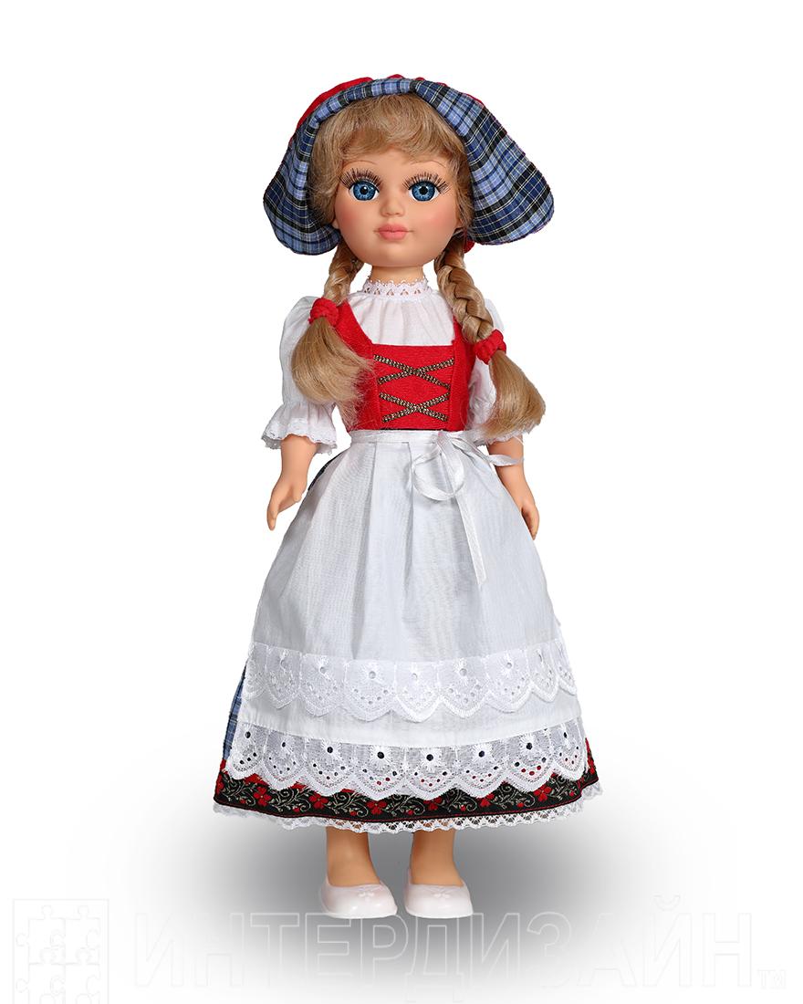 Анастасия Весна в баварском костюме - кукла с выразительными глазами, пушистыми ресницами и роскошными волосами, заплетёнными в косы. В костюме куклы использованы стилизованные элементы баварского народного костюма. В комплект одежды входит: платье, жилет, фартук с тесьмой, туфельки и шапка. Производитель оставляет за собой право изменения цветовой гаммы одежды и волос куклы, цвет глаз может варьироваться. Игровые возможности куклы: длинные волосы, похожие на натуральные, можно завивать, расчёсывать и укладывать в разные причёски, меняя образ куклы. Продуманная конструкция куклы позволяет её сажать, ставить на ножки, переодевать. Эта кукла подходят для сюжетных игр и разнообразных игровых действий ребёнка. Элементы кукольной одежды: застежки, головной убор, обувь способствуют развитию мелкой моторики. Высота 42 см. Кукла не озвучена. Тело куклы пропорционально и гармонично: руки и голова выполнены из эластичного приятного на ощупь винила, а туловище и ноги из пластмассы.