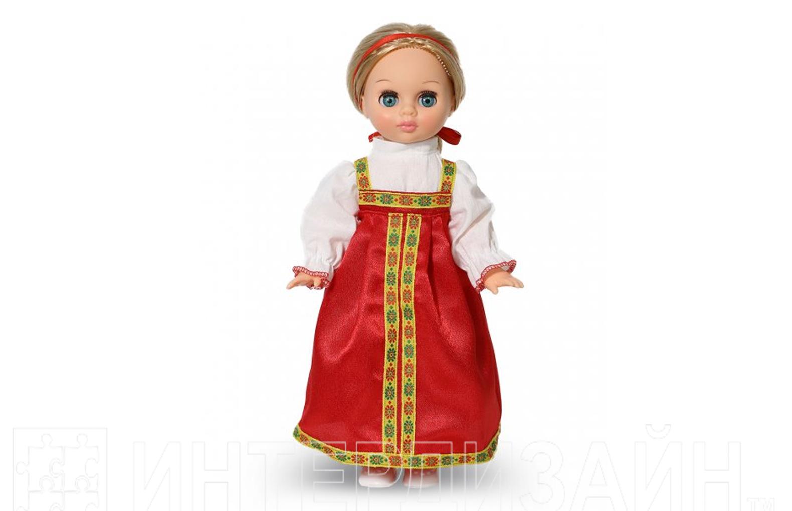 Кукла Эля Весна в русском костюме из серии «Этно» может стать настоящей подружкой для ребёнка. Это кукла, одетая в стилизованный русский народный костюм. Костюм состоит из: рубахи с вышивкой, сарафана с отделкой из тесьмы и косынки. Комплект дополнен туфлями. Производитель оставляет за собой право изменения цветовой гаммы одежды и волос куклы. Игровые и дидактические возможности куклы: она может быть, так называемой, «методической куклой»,т.е. для обучения детей культурным и национальным традициям. Наличие элементов одежды, которые легко снимаются и надеваются, разнообразит возможности сюжетно-ролевых игр с этой куклой, в процессе которых развивается мелкая моторика и творческое воображение ребёнка. Прекрасные прошитые волосы из качественного нейлона, похожие на натуральные, можно завивать, расчёсывать, укладывать в разные причёски, меняя образ куклы. Рост куклы 30,5 см. Глаза вставные закрывающиеся. Тело куклы пропорционально.