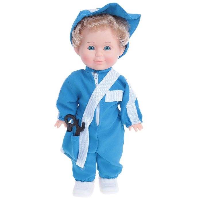 Кукла «Митя механик» всегда придет на помощь, если что-то сломается. Он одет в рабочий комбинезон и кепку. В комплект входит сумка с инструментами, которая перекинута у него через плечо.