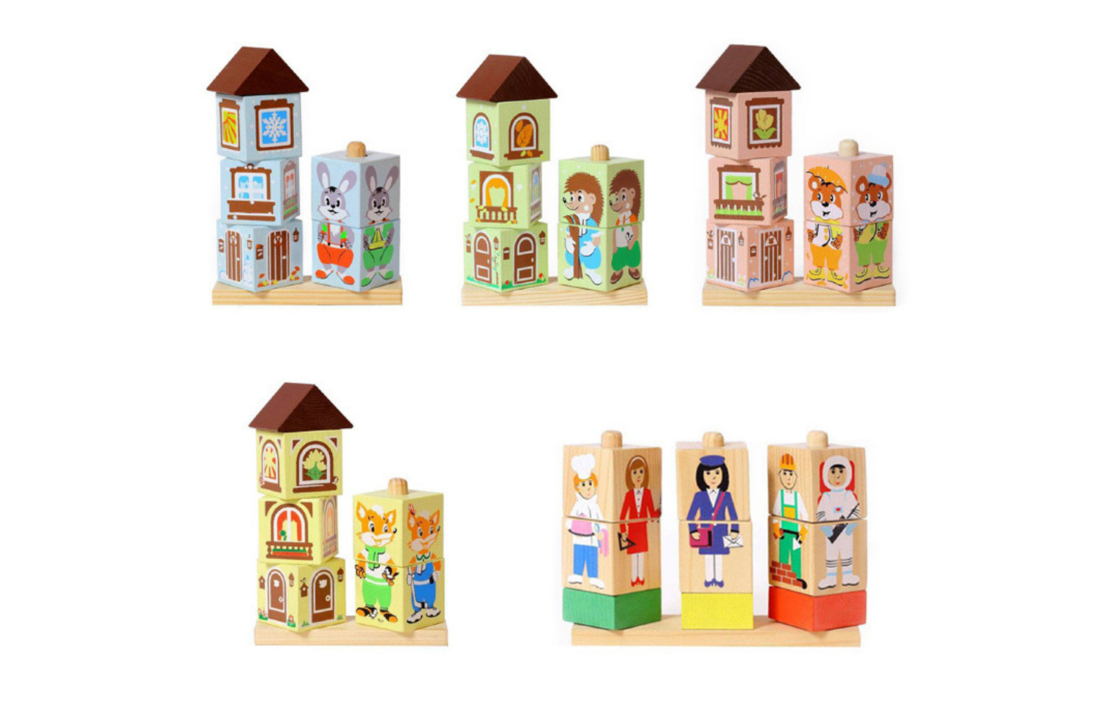 КОМПЛЕКТ ДЕРЕВЯННЫХ КУБИКОВ НА СТЕРЖНЕ (5 видов) - Описание