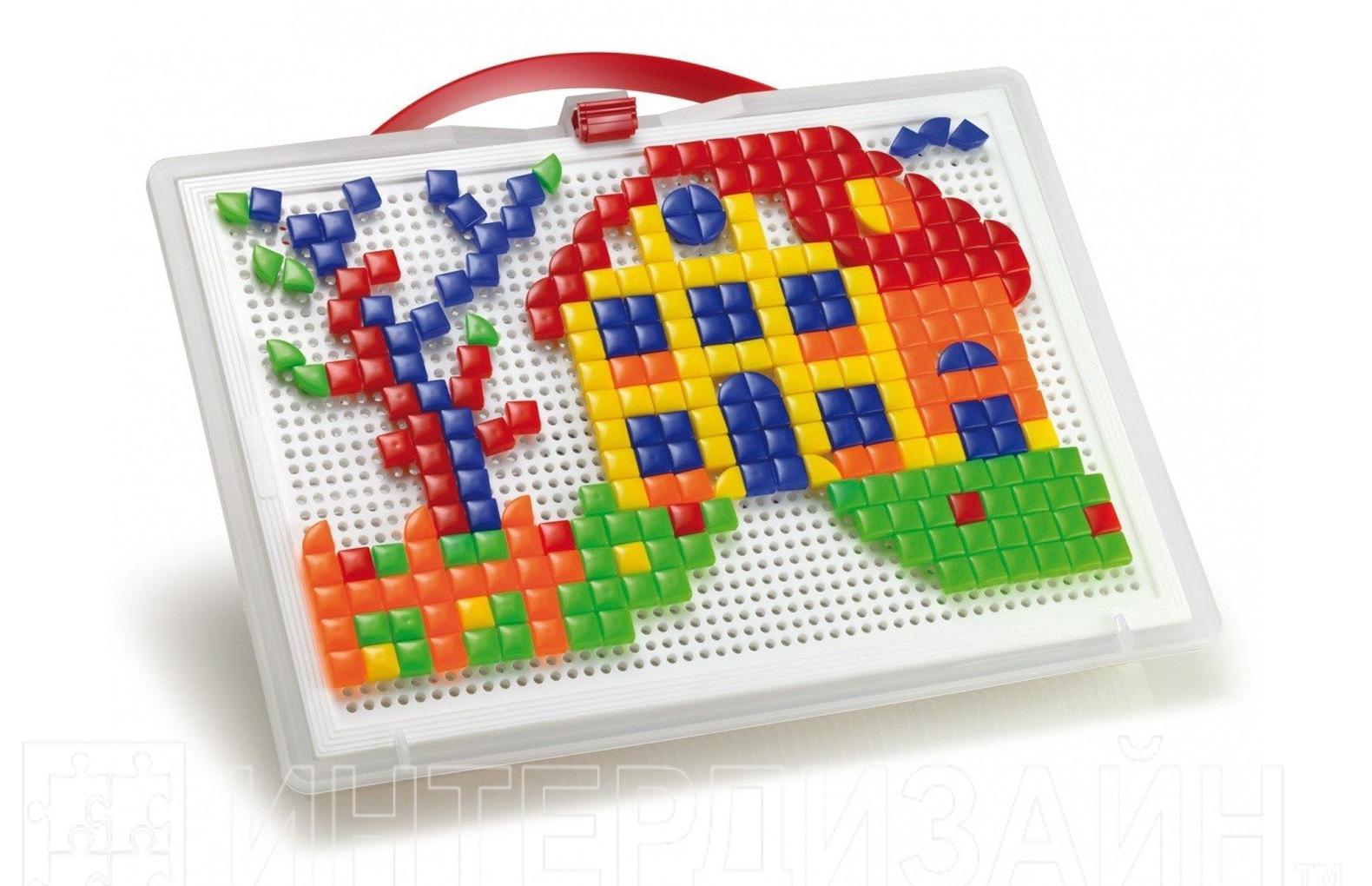 Фигурная настольная мозаика - отлично зарекомендовавший себя развивающий материал в оригинальном исполнении для досуга дошкольников средних и старших групп. Основная игровая задача — составить из разноцветных деталей фантазийное изображение — дополнена новым функционалом. Детали мозаики выполнены в форме квадратов и треугольников, что, с одной стороны, делает задачу немного более сложной, а с другой - дает новые возможности для творчества и фантазии ребенка. С целью сохранности всех элементов набора после игры детали необходимо хранить в специальном контейнере, входящем в комплект.