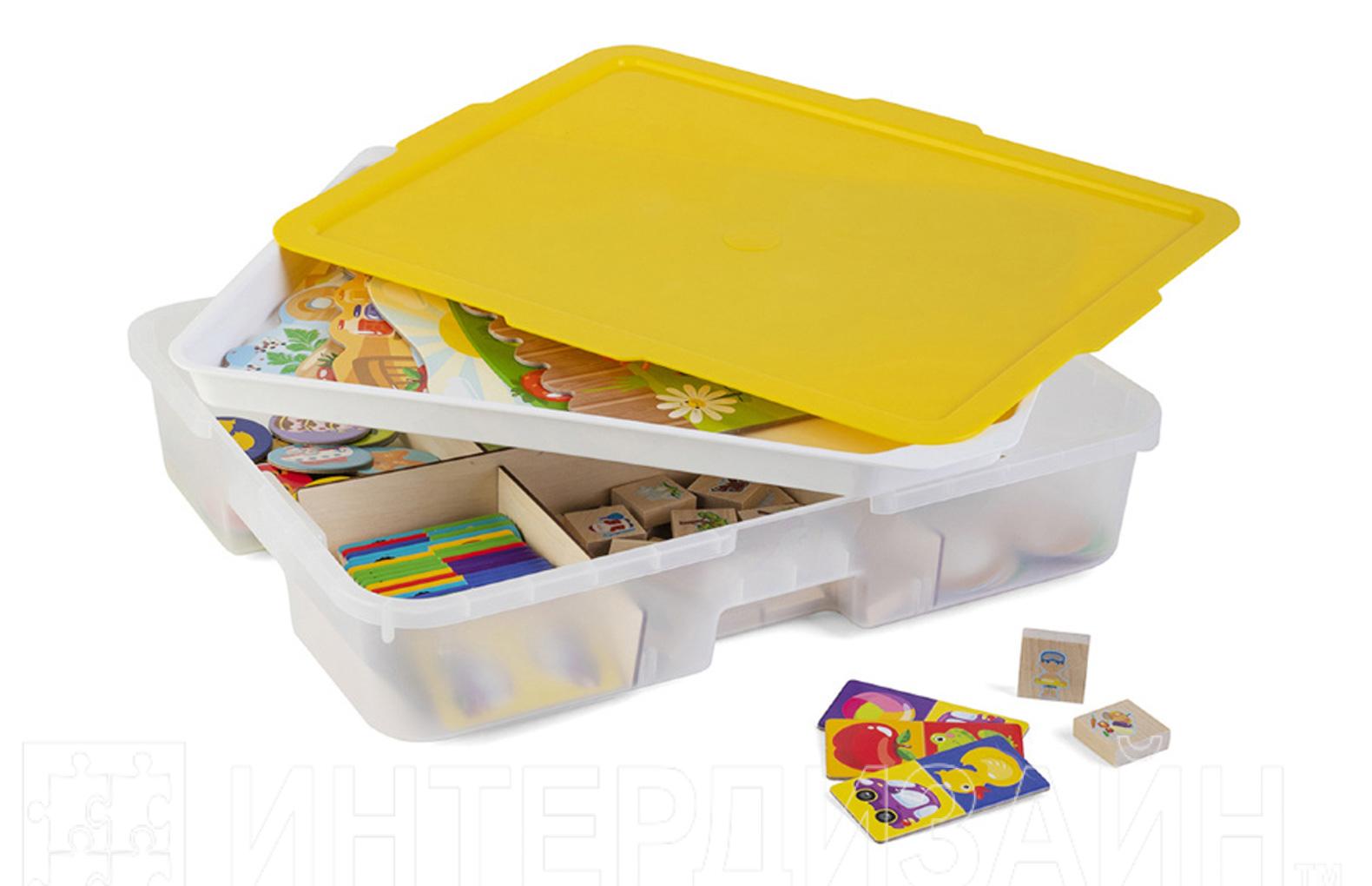 В комплекте:лото "Веселый урожай", пазлы "Собери в группы", лото "Контуры", домино универсальное, мемо, лото "Времена года", контейнер Игротека №1 / вкладыш.