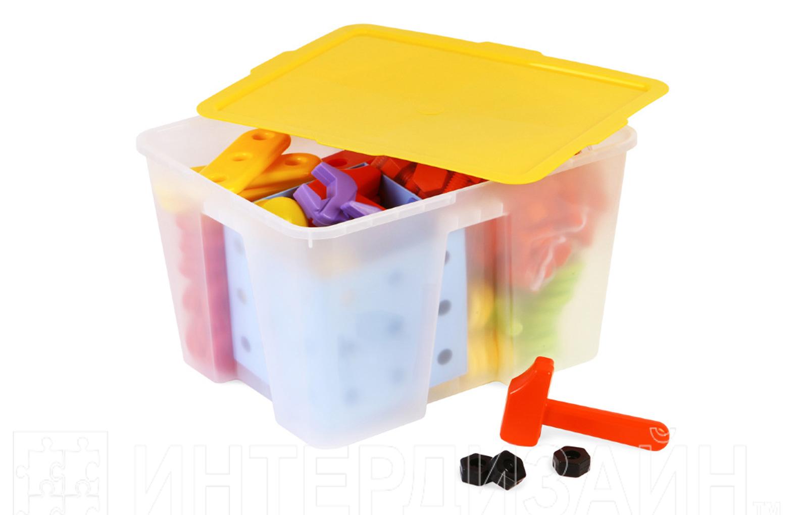 В составе:220 деталей: короба, планки с отверстиями, болты, колеса, гайки, инструменты, контейнер Игротека №3.