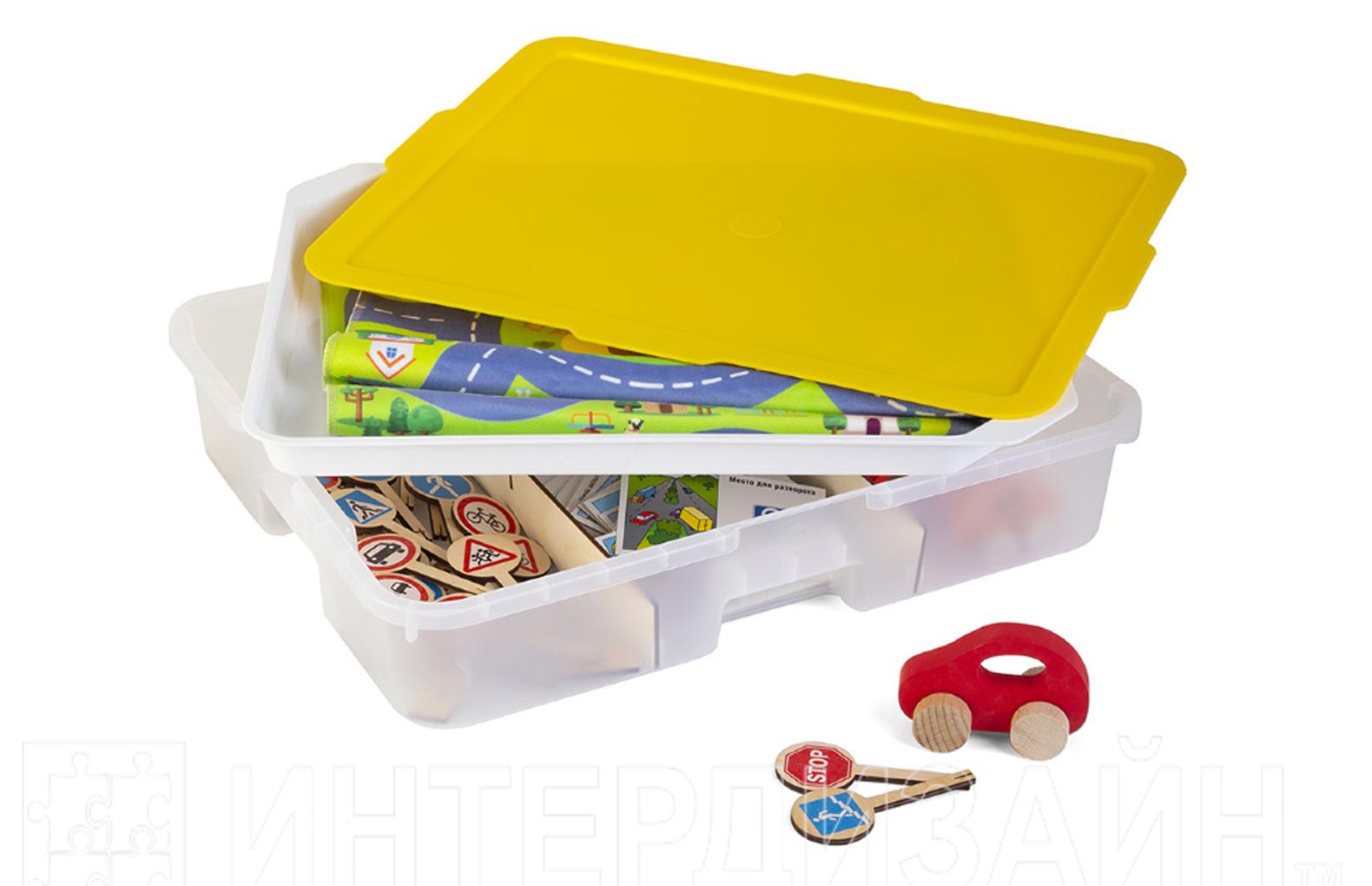 В комплекте:игровой коврик "Дорога", игра "Дорожные знаки", лото "Дорожные знаки", 6 машинок, контейнер Игротека №1.